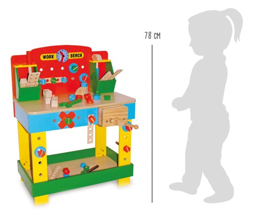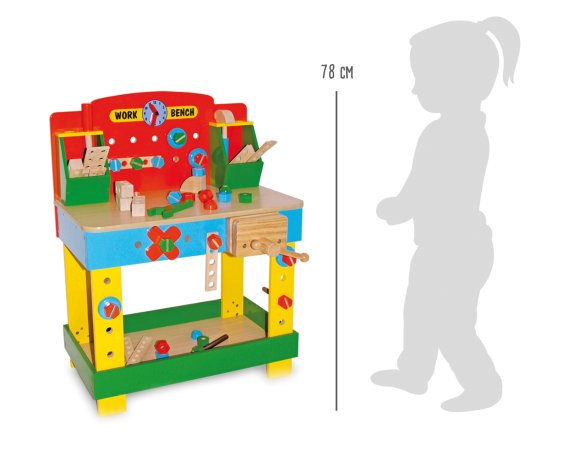 Att ha en arbetsbänk som de vuxna är coolt. Speciellt om du är en liten handymanBordet är i vackra färger och har skruvstäd, skiftnyckel, skruvar m.m.