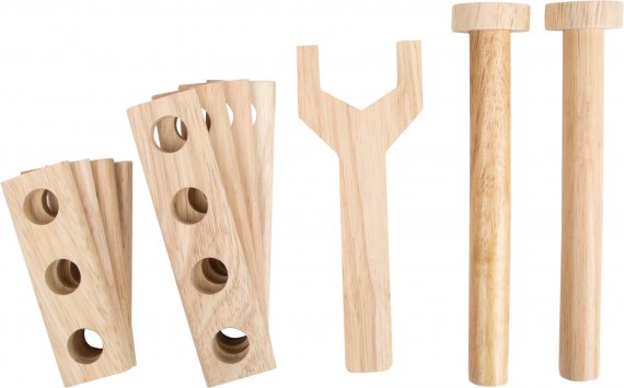 Bordet har en skruvtving och arbetsytan är stor och låter barnet träna finmotorik, det ska nämligen skruvas, hamras, mätas och sågas mycket.