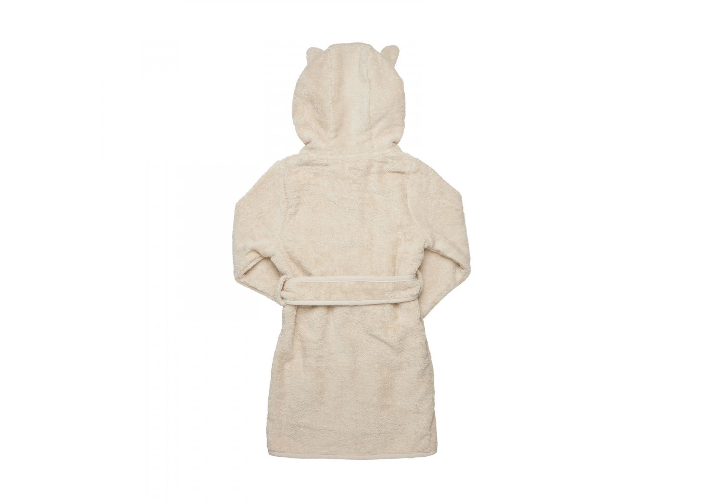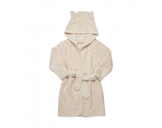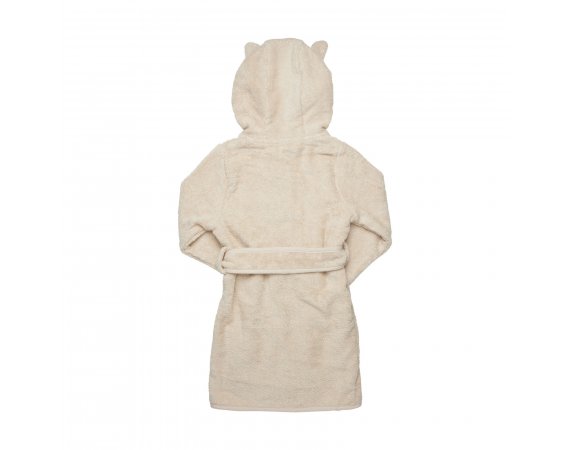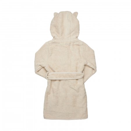Badrockens huva har broderat djurmotiv och påsydda öron. Dessutom en stropp i nacken som gör den lätt att hänga upp efter användning.