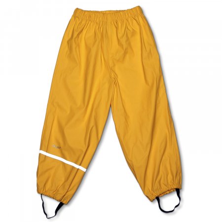 Regnbyxorna i storlek 110-150 har resår i midjan.