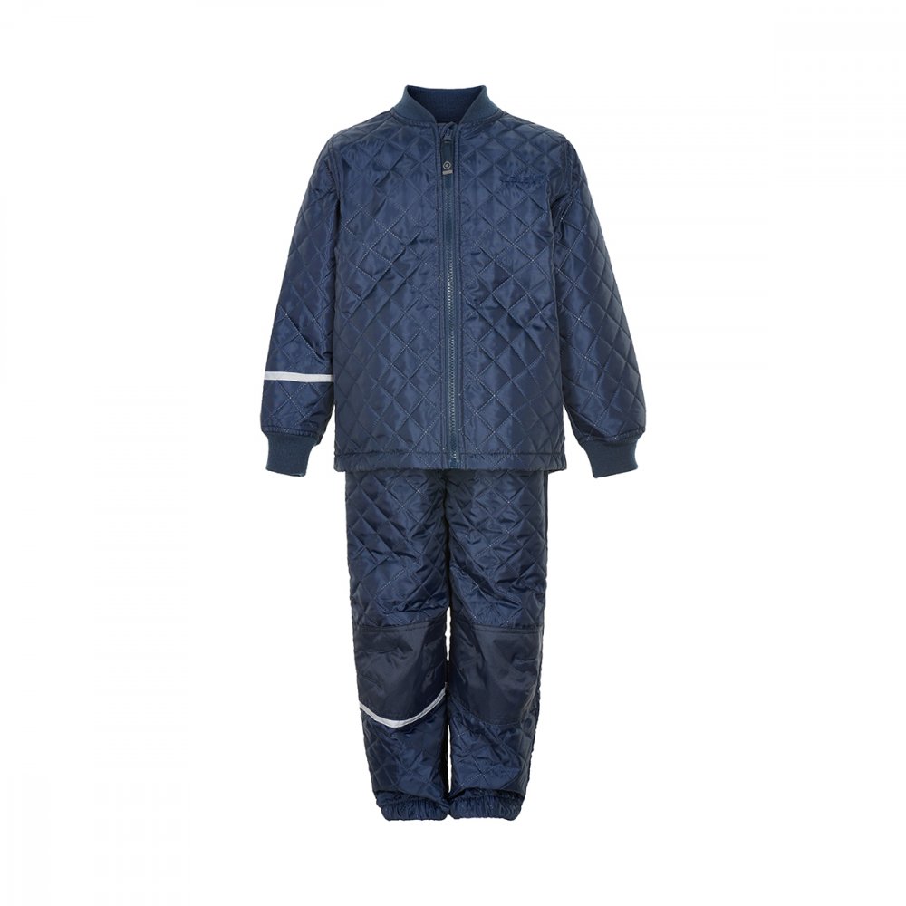 Termokläderna har vatten- och smutsavvisande nylon på knä och rumpa. Dessutom synliga reflexer, god andningsförmåga och elastisk vid foten och midjan.