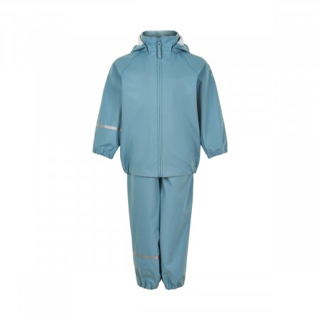 Setet har dragkedja och tryckknappar. Jackan har en avtagbar huva och det finns kardborreband i ärmarna så att regn och vind kan hållas ute. Det finns också resår vid anklarna, elastiska fotremmar och olika reflexränder som säkerställer att ditt barn blir mer synligt i mörkret.