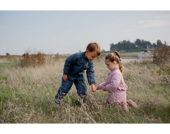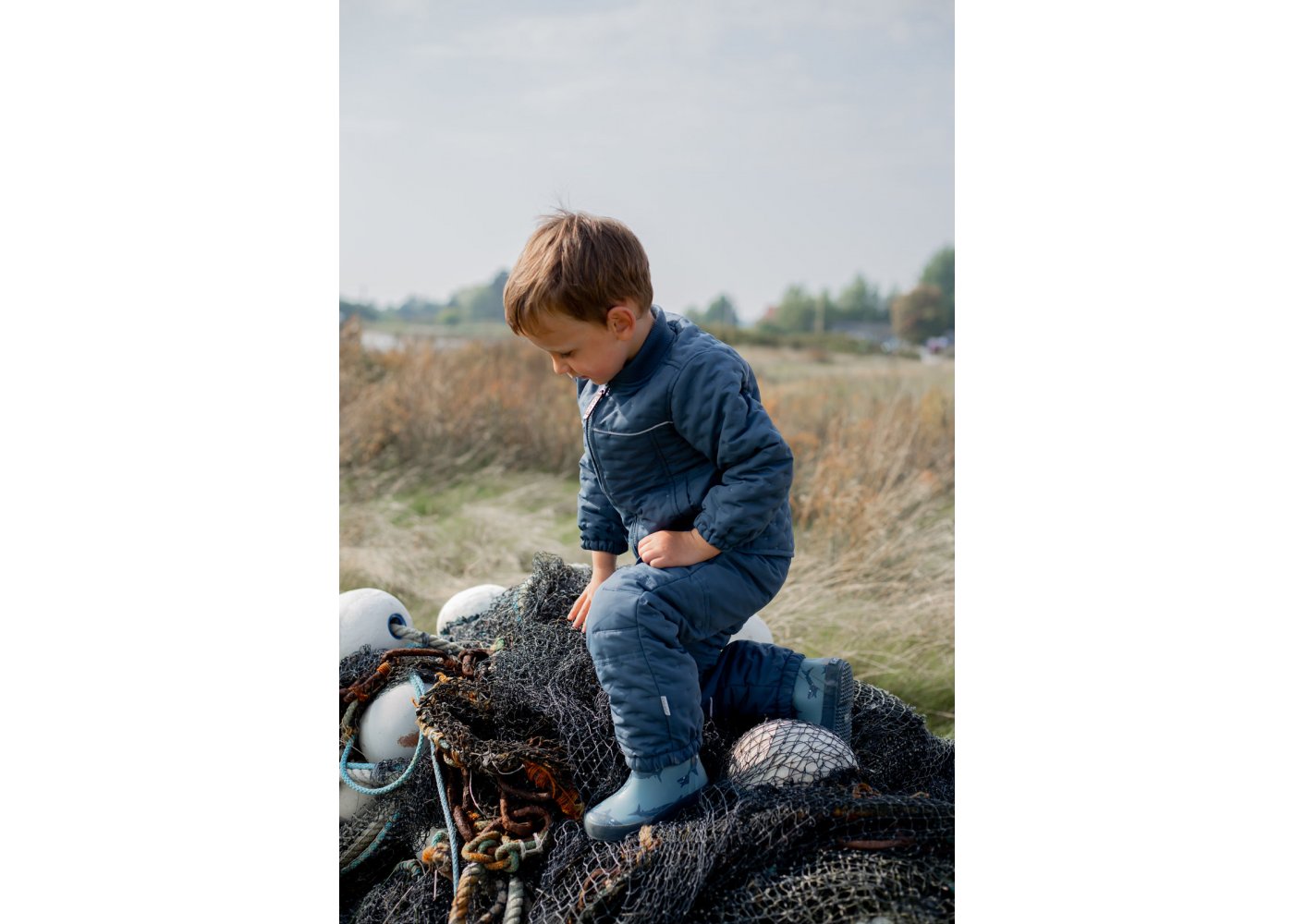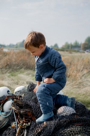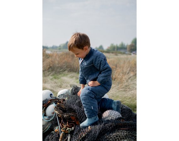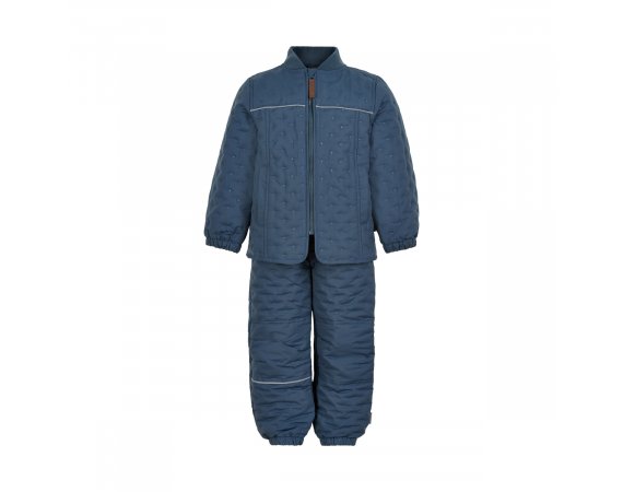 Skönt quiltat termoset i blått med byxor och jacka i ett fint designmönster från CeLaVi.Jackan har en fin reflexkant i kontrastfärg och volanger i brösthöjd, vilket ger setet ett snyggt utseende. Jackan har resår vid handleden och en praktisk ribb i halsen, vilket gör den bekväm att bära. Jackan stängs framtill med en genomgående dragkedja.