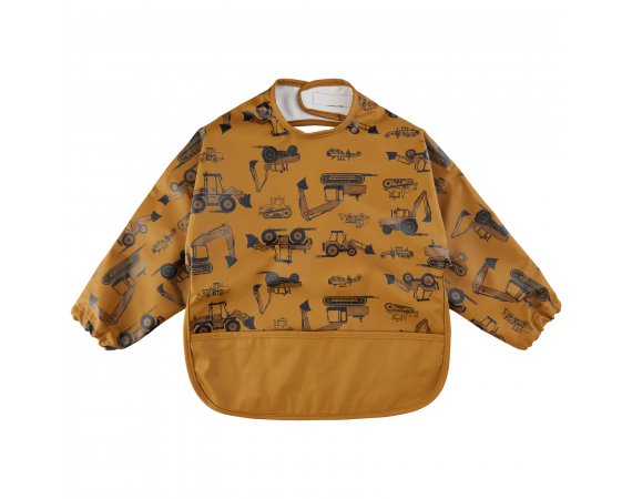 Skönt PU-förkläde med långa ärmar i brunt med byggmaskiner.Ett förkläde eller haklapp är alltid praktiskt att ha inom räckhåll när det är matdags.