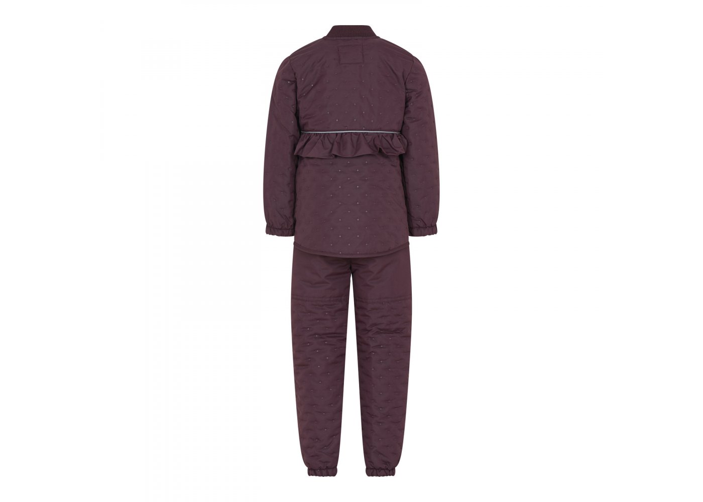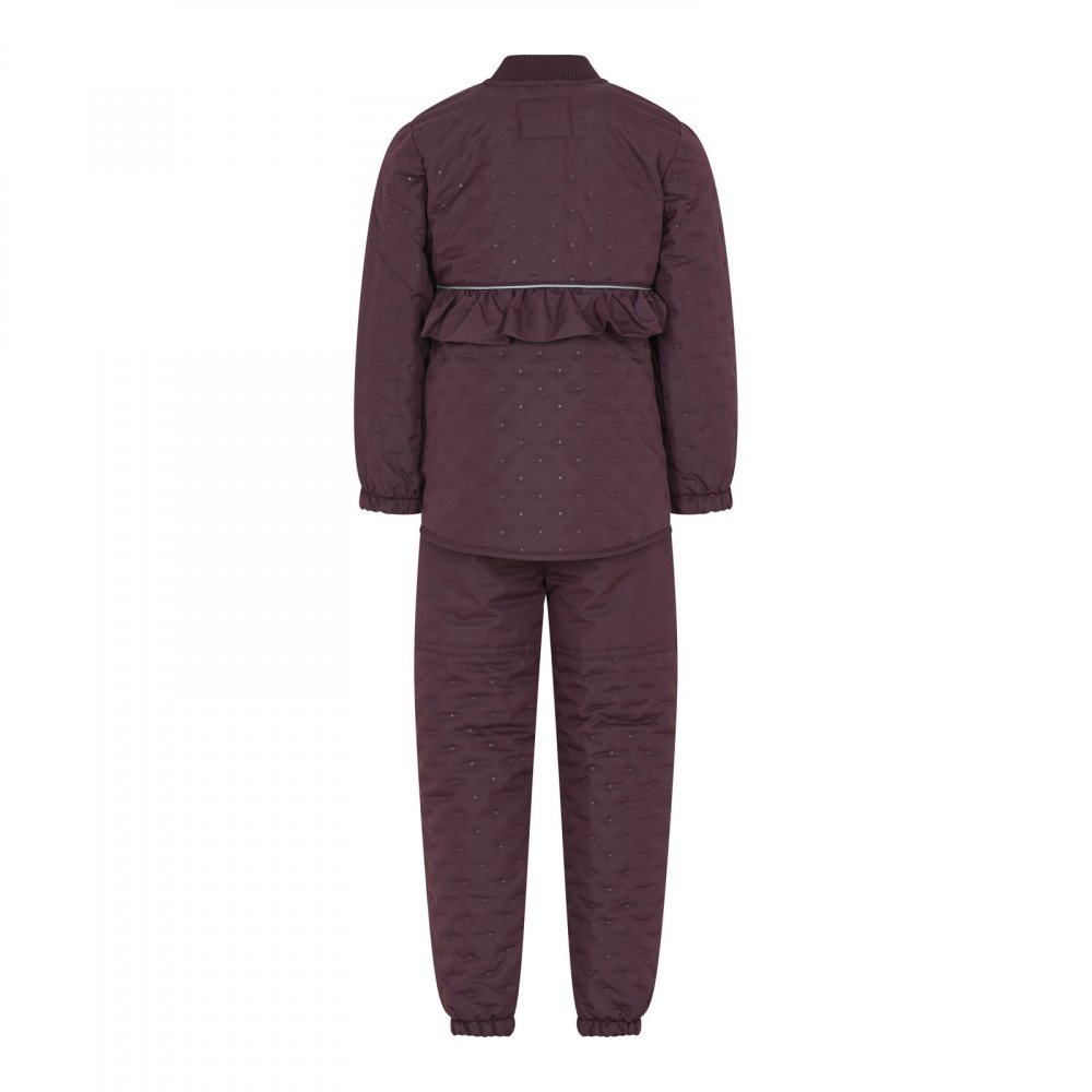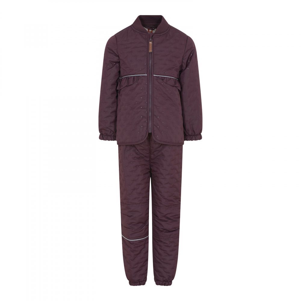 Termobyxorna har resår i midjan och vid anklarna och har reflexpiping som en fin detalj vid knäna. Termosetet har ett extra hållbart material på knän och bakdel, vilket ofta är extra utsatta när man leker utomhus.
