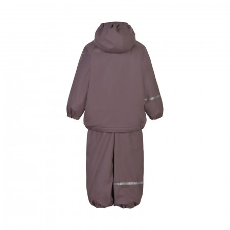 Varma, praktiska och slitstarka återvunna PU-regnkläder i lila med läckert fleecefoder.