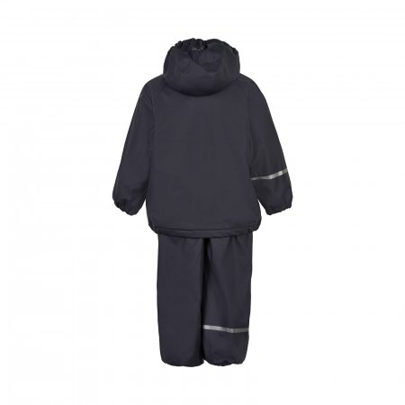 Varma, praktiska och slitstarka återvunna PU-regnkläder i blått med läckert fleecefoder.