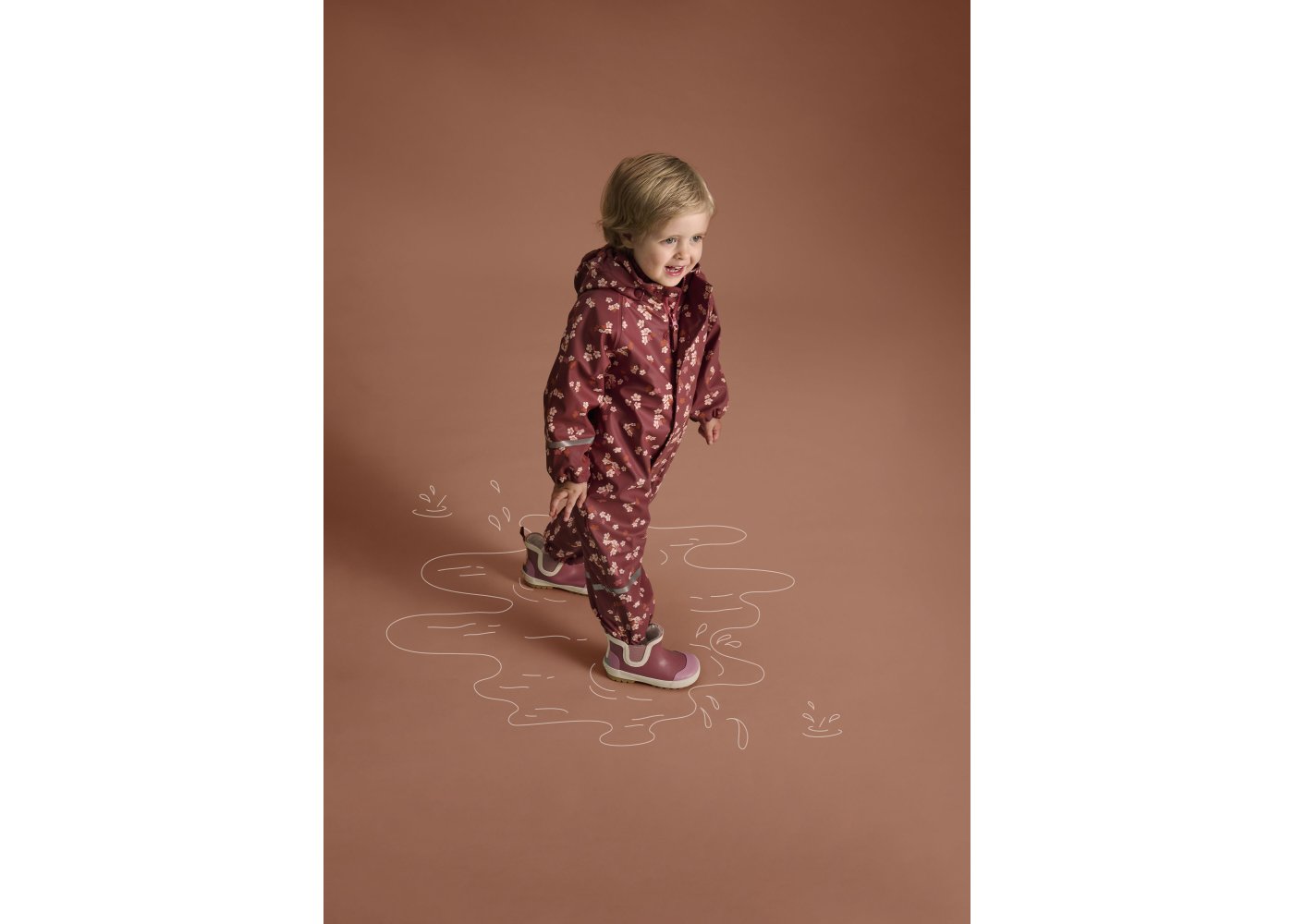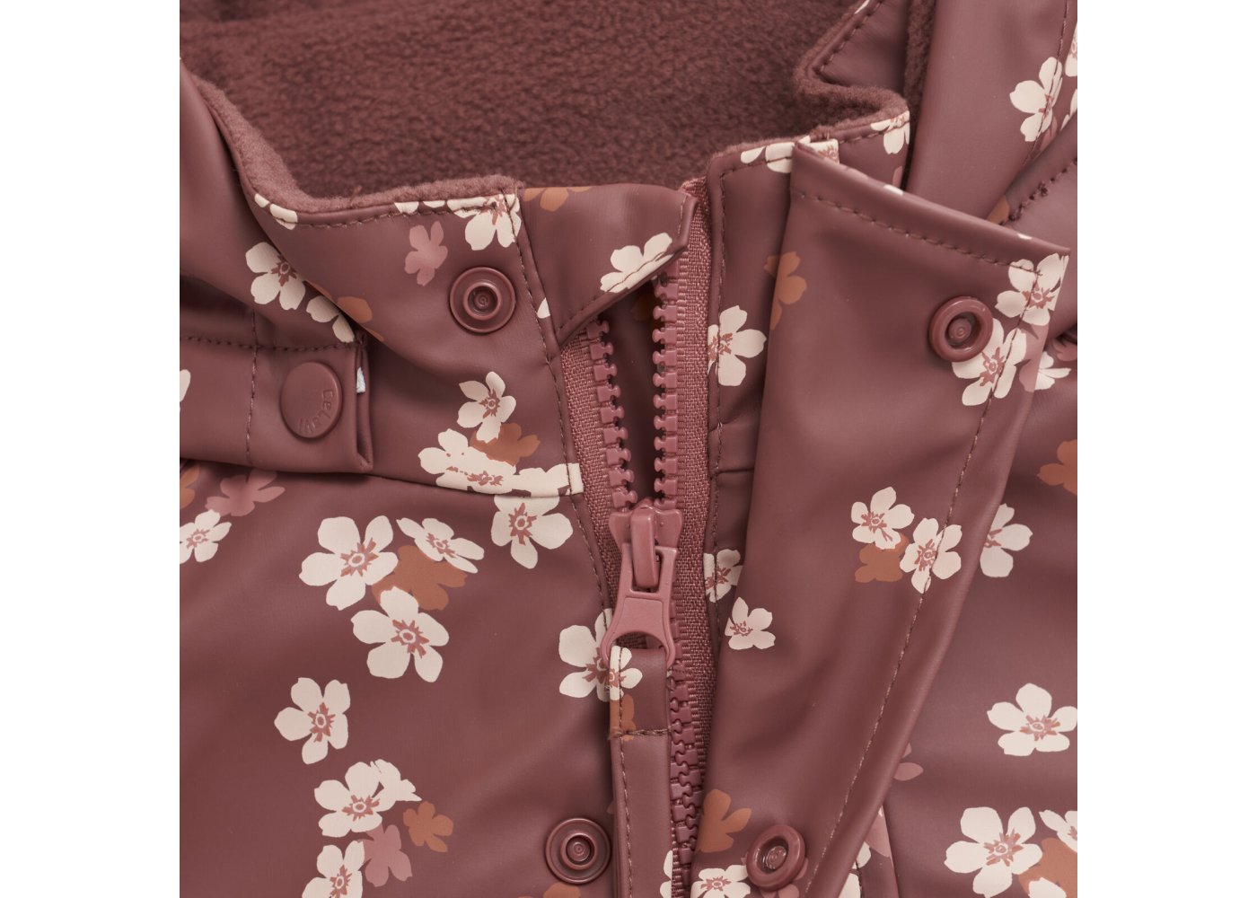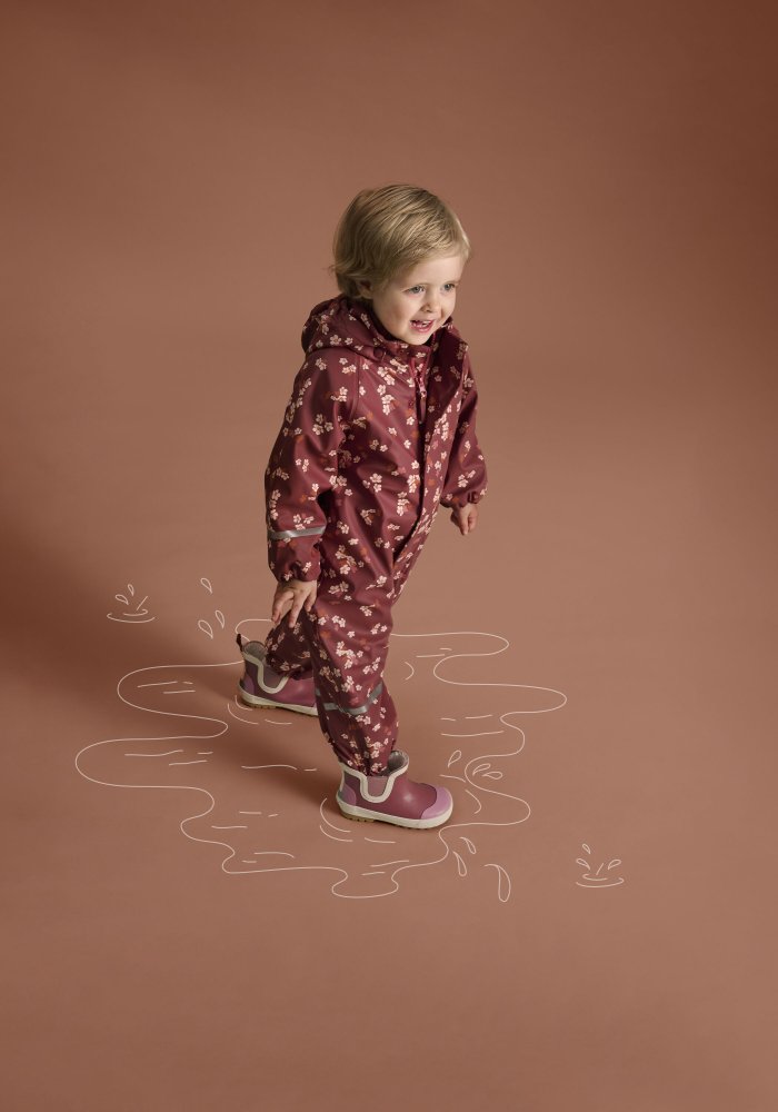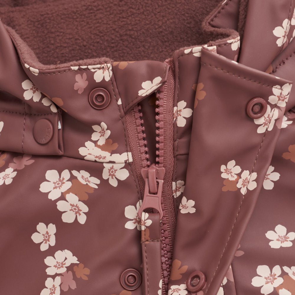 Praktiskt och slitstarkt PU-regnställ med fint blommigt tryck.