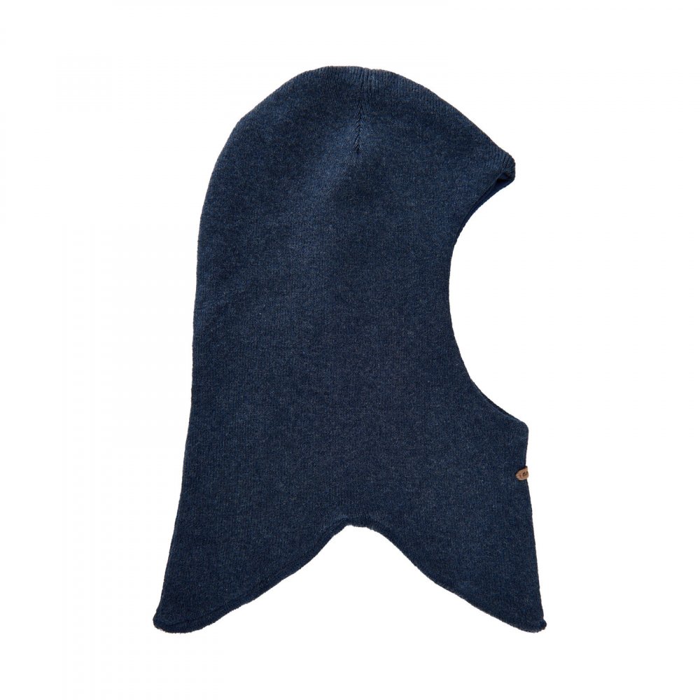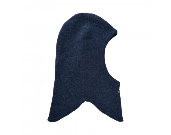 Praktisk och varm mörkblå elefantmössa i två lager med vindstopp vid öronen för extra köldskydd.