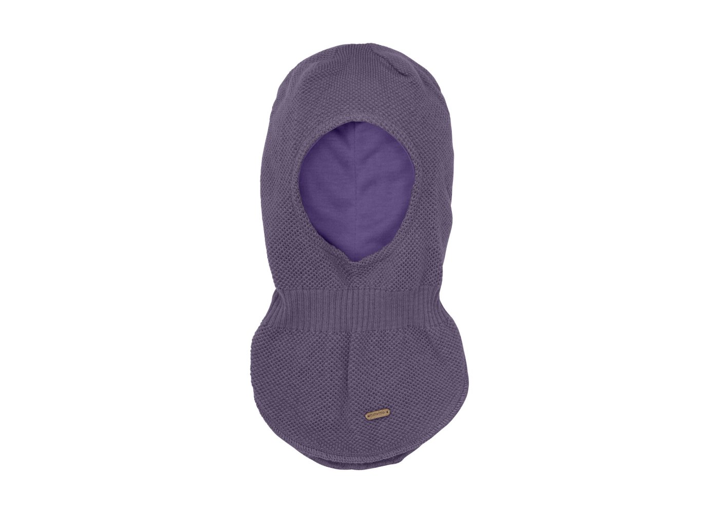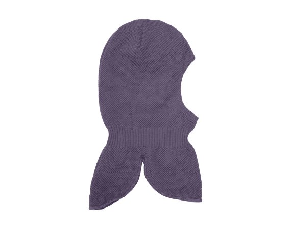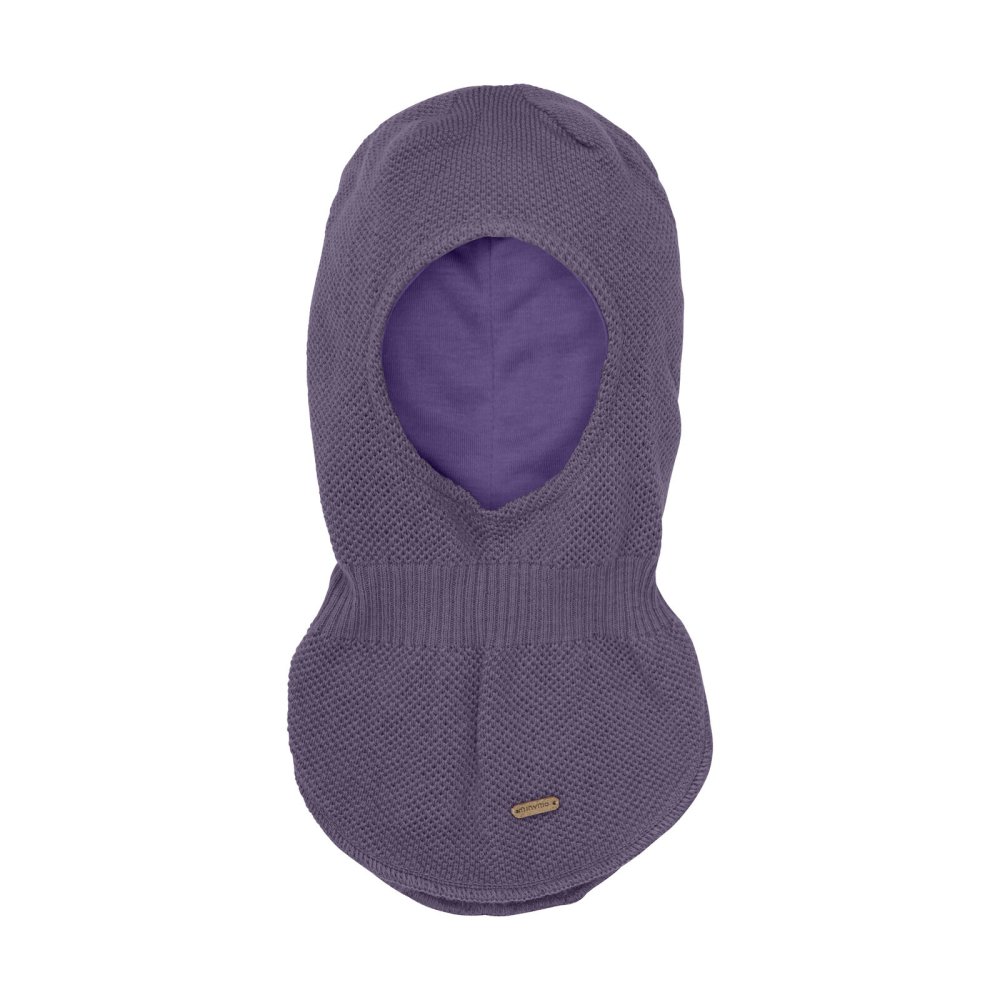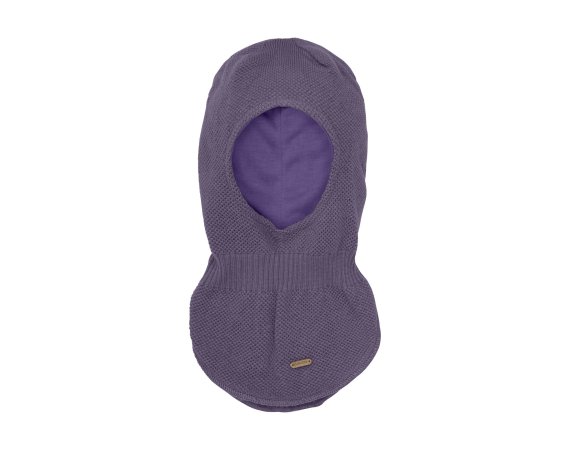 Praktisk och varm stickad balaklava i lila med bra passform från Minymo.