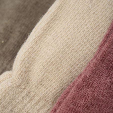 Set med tre par vantar i grädde, brunt och rosa i en härlig, stretchig kvalitet.
