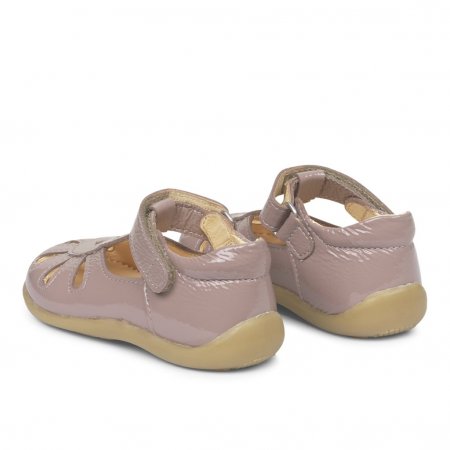 Söt sandal med hålmönster och fina hjärtan över fotledenSandalen har ett fast hällock som ger maximalt stöd, sluten tå och justerbart kardborreband över fotleden. Innersulan är gjord av mjukt läder och sulan är en mjuk, lätt och flexibel gummisula som säkerställer ett bra fotfäste utomhus.