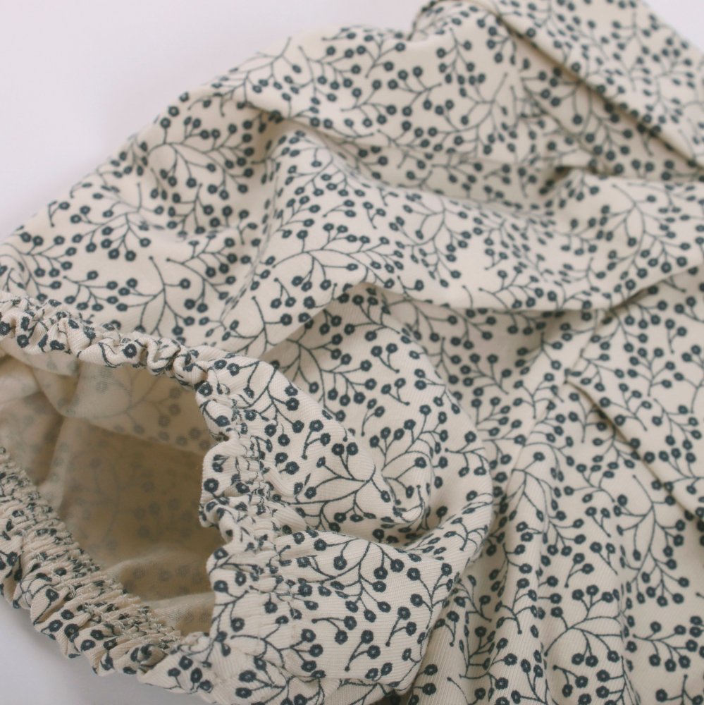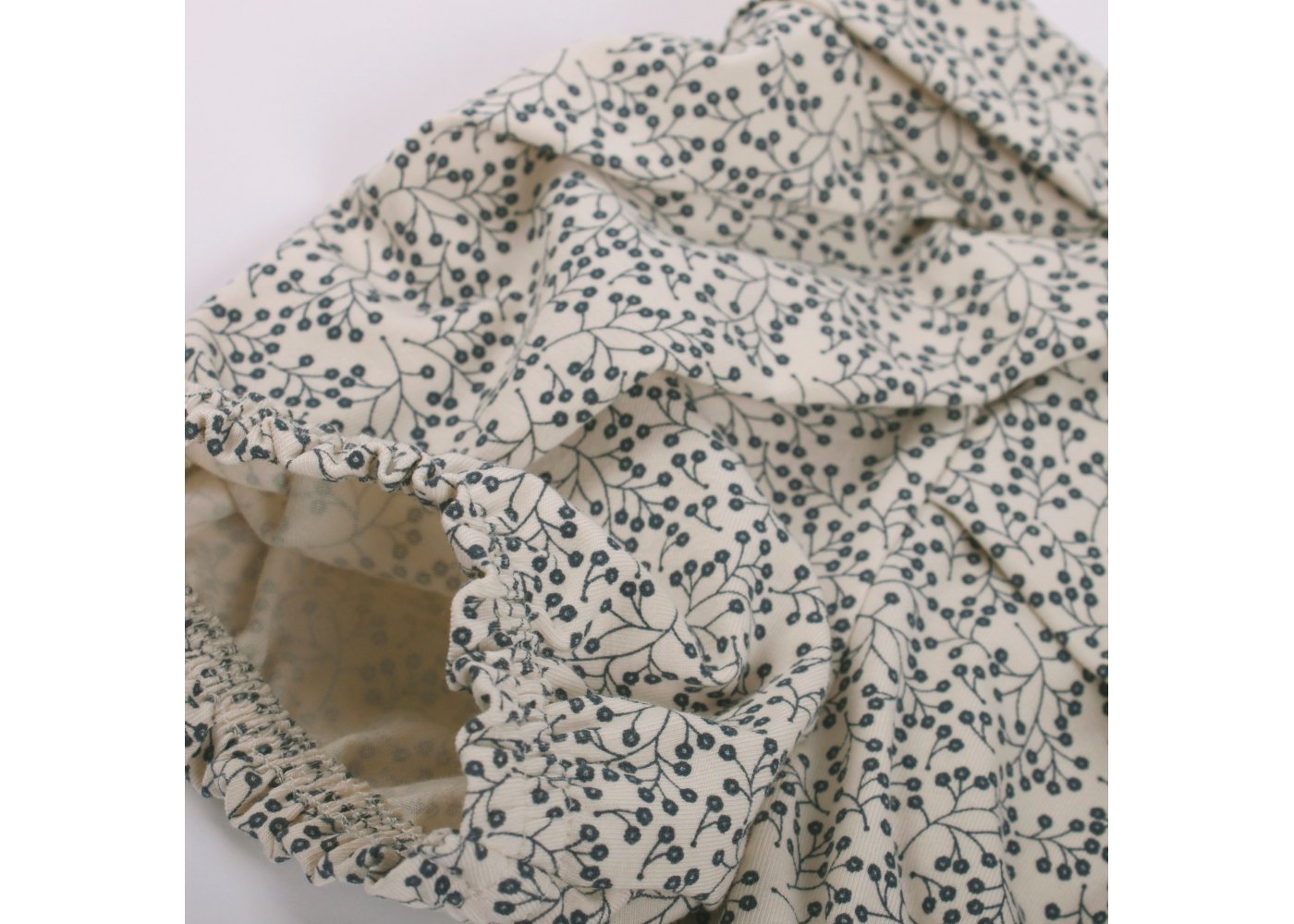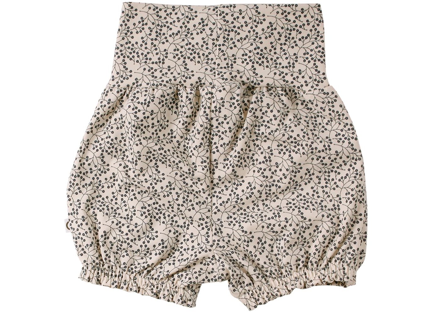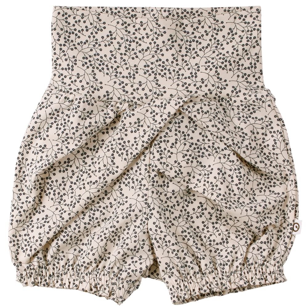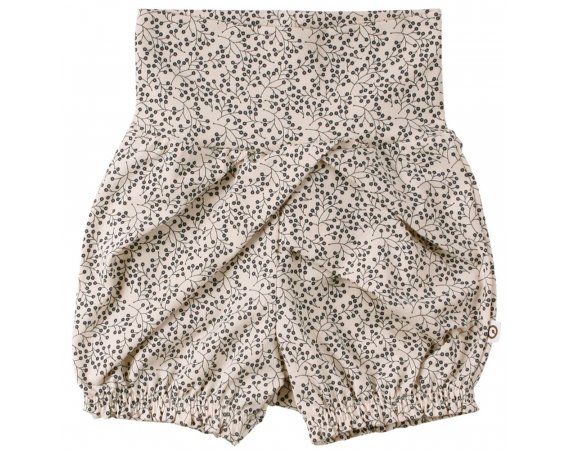 Vackra blommor med söta feminina veck på framsidan från Müsli.Shortsen har en hög elastisk kant överst, som kan vikas ner efter behov. De är gjorda i en utsökt mjuk och stretchig kvalitet och har en fin krämfärg med tryck av små grenar i midnattblå färg.