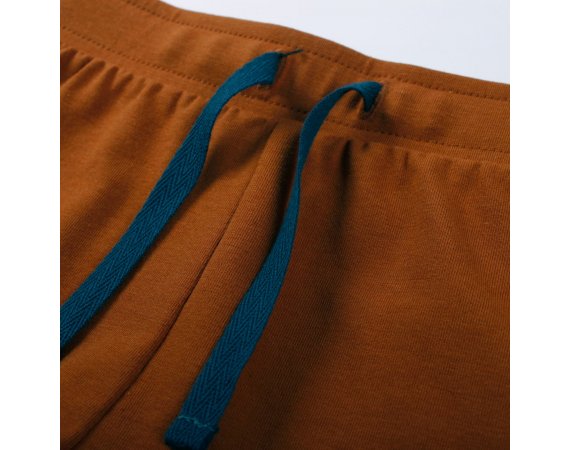 Underbara basshorts i brunt med kontrastfärgat knytband och resår i midjan från Müsli.Shortsen är gjorda i en läcker, mjuk och töjbar bomullskvalitet som gör den bekväm att bära. Textil: 95% ekologisk bomull, 5% elastan