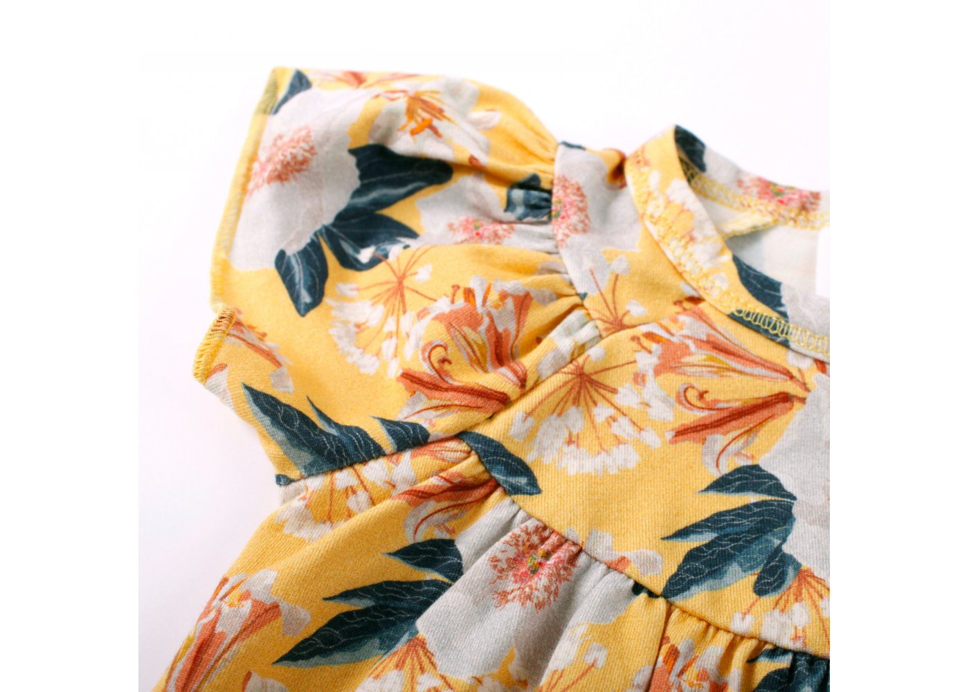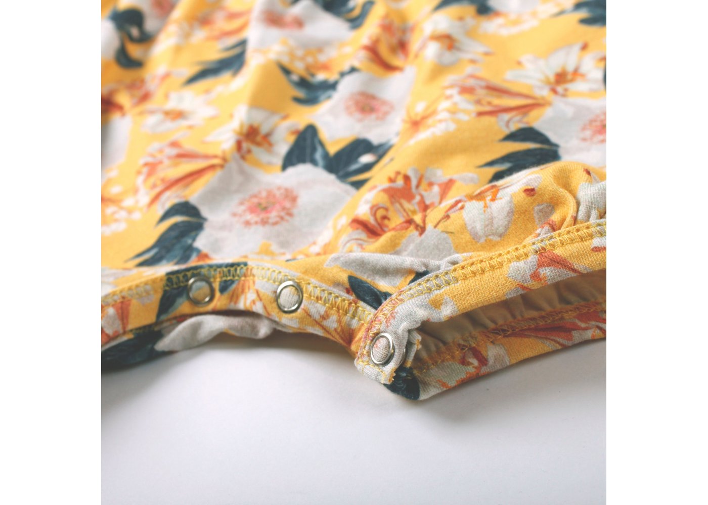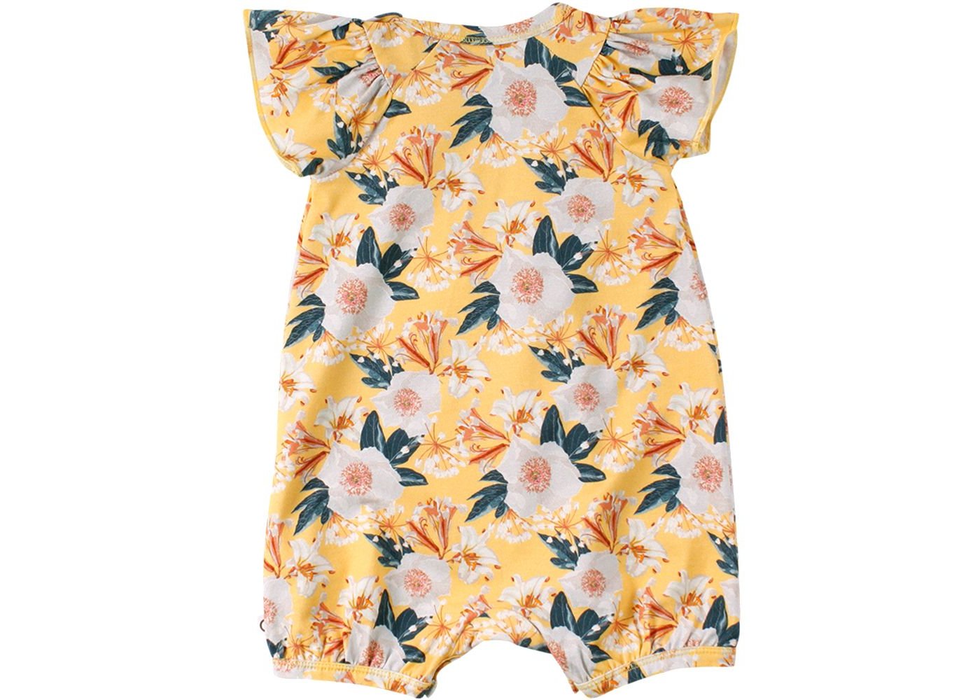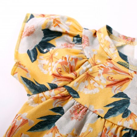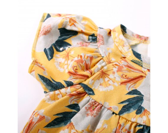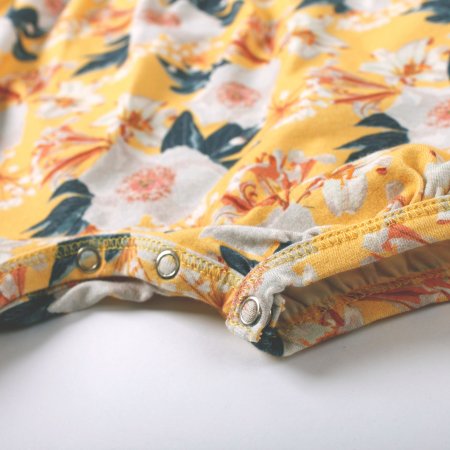 Supersöt kortärmad sommardräkt med vackra blommor i rosa, vita och gröna nyanser från Müsli.Bodyn har smala ribbade kanter i alla öppningar, kuvertstängning på axlarna och stängs med tryckknappar mellan benen. Den är gjord i en läcker, mjuk och stretchig bomullskvalitet som gör den bekväm att ha på sig. Textil: 95% ekologisk bomull, 5% elastan