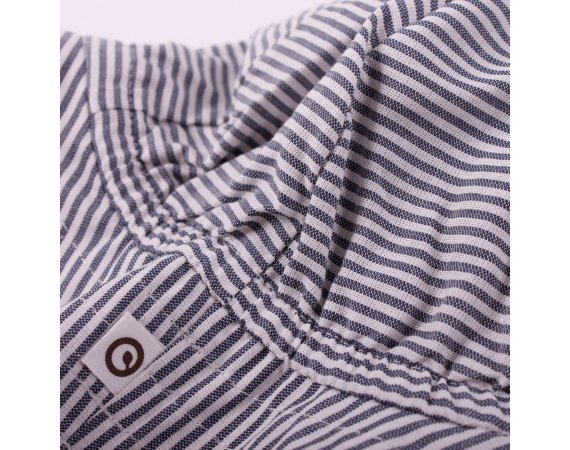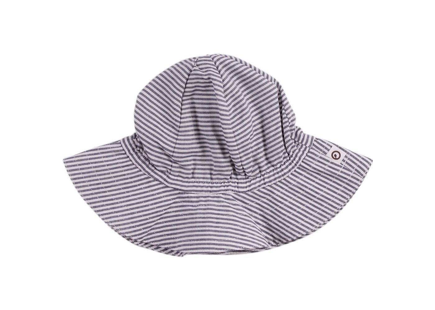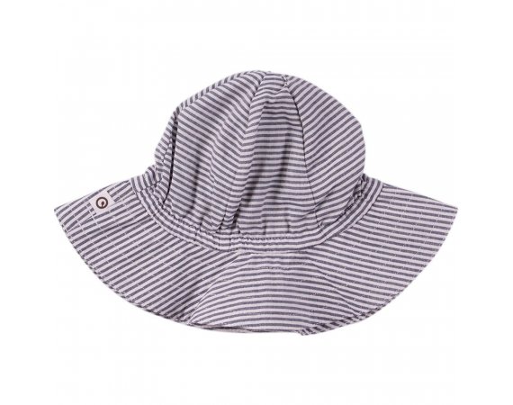 Fin blå- och vitrandig solhatt från Müsli.Hatten har en stor skärm som skyddar mot solen i både ansikte och nacke. Textil: 100% ekologisk bomull