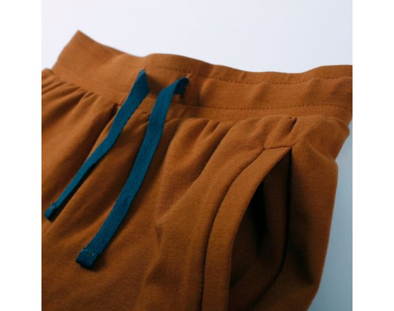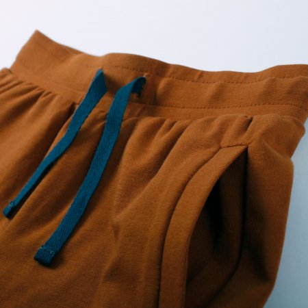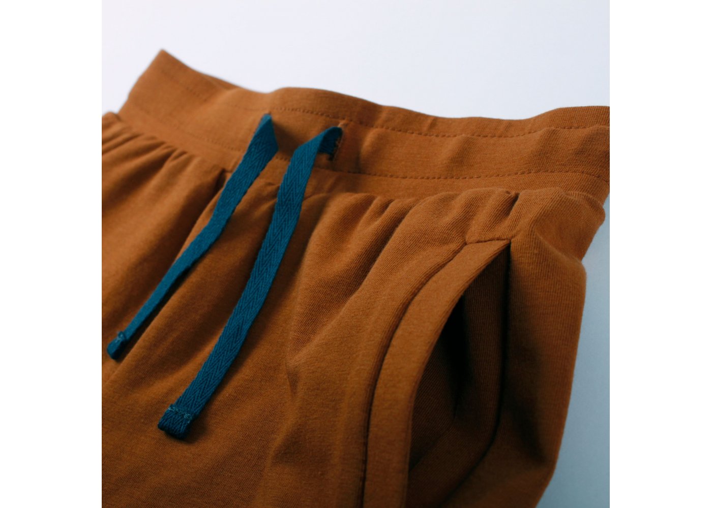 Underbara basshorts i brunt med kontrastfärgat knytband och resår i midjan från Müsli.