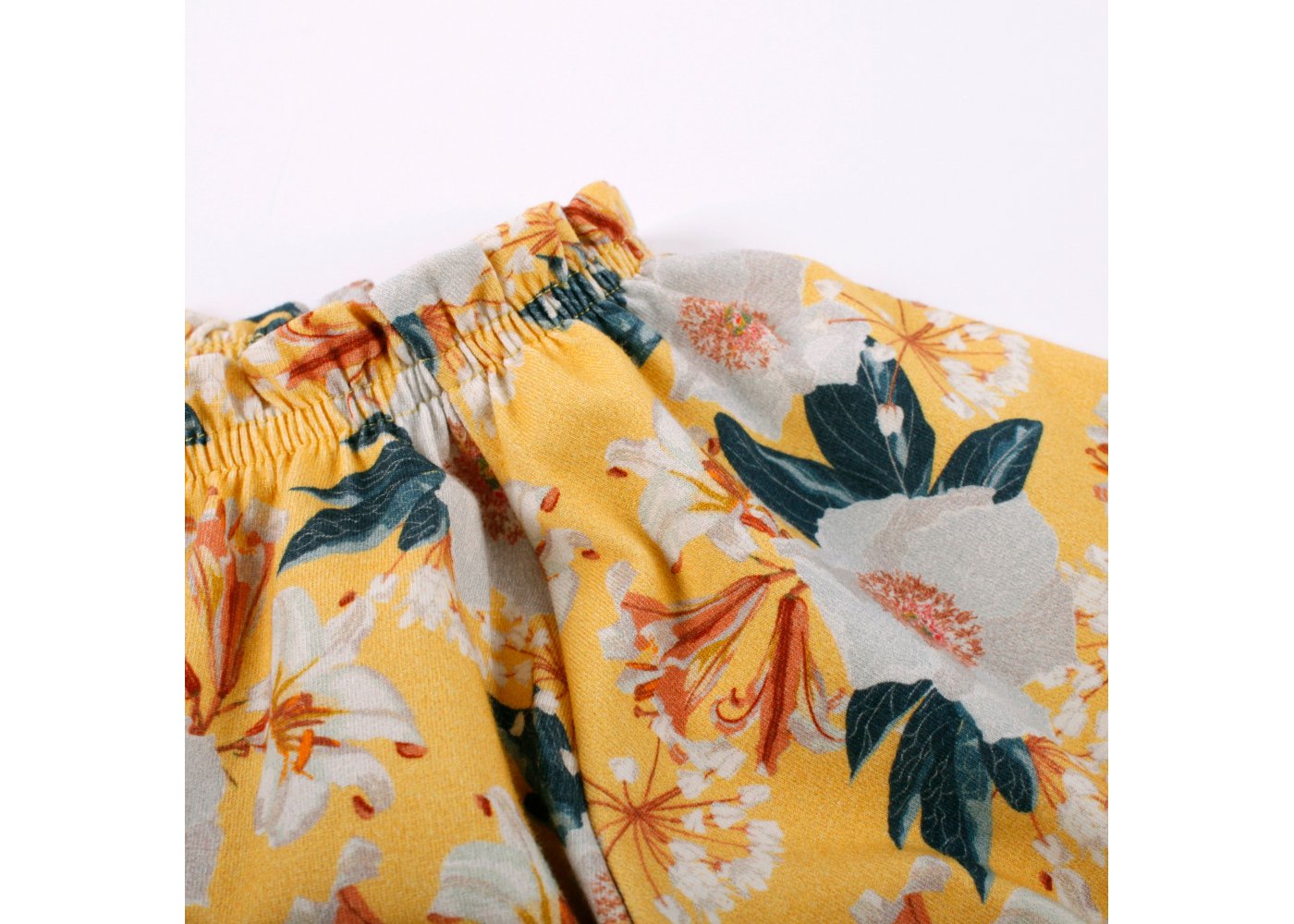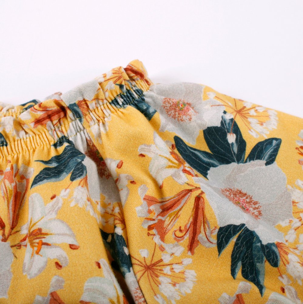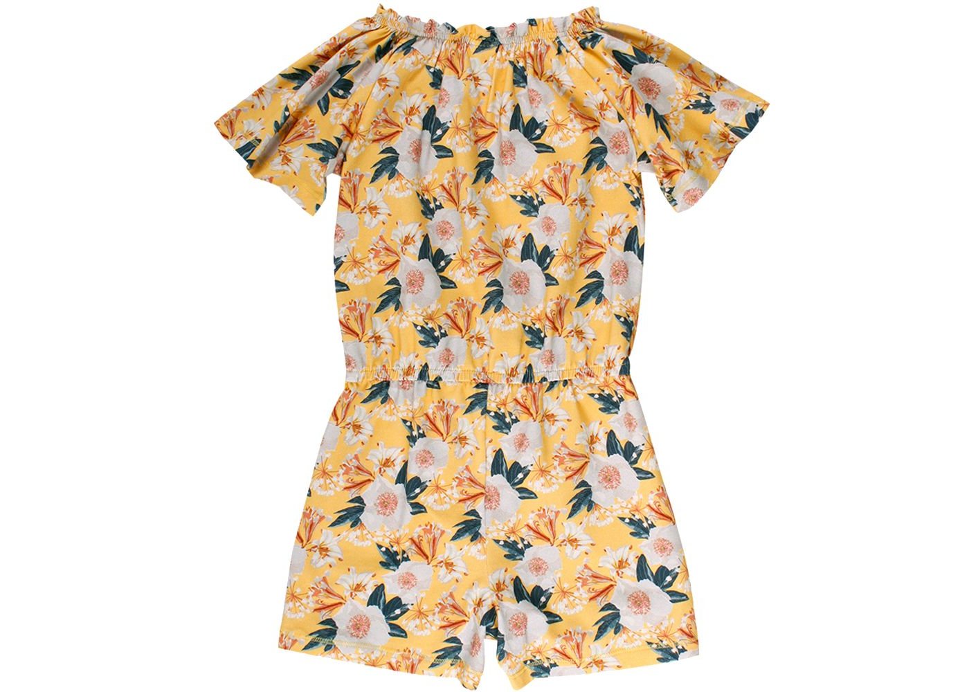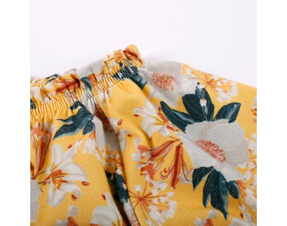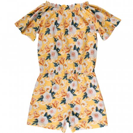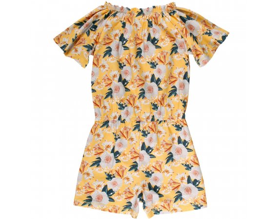 Bedårande sommardräkt med vackra blommor i rosa, vita och gröna nyanser från Müsli.Dräkten har feminina rynkor i urringningen, korta ärmar och korta ben. Den har resår och en fin rosett i midjan. Sommardräkten är gjord i en läcker, mjuk och töjbar bomullskvalitet som gör den bekväm att bära. Textil: 95% ekologisk bomull, 5% elastan