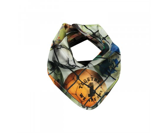 Fin haklapp med tryck av färgglada fotbollar från Molo.En haklapp är fin, praktisk och har flera syften. Den kan pynta, men viktigast av allt, det skonar kläder och samlar saliv från de små barnen under den tid då de första tänderna kikar ut. Den är enkel att använda och stängs med 2 tryckknappar i nacken.