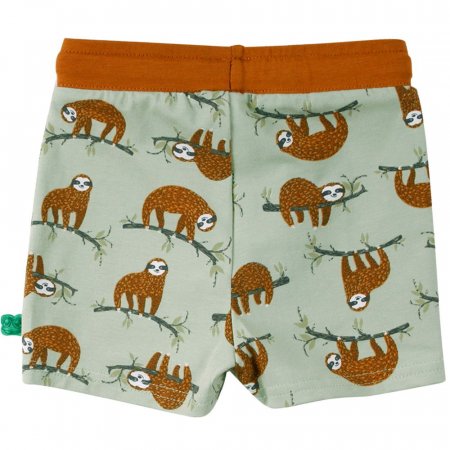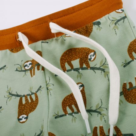 Supersöta shorts i dammgrön färg med tryck av sengångare för små flickor och pojkar.Shortsen har resår och knytband i midjan och är gjorda av den mjukaste bomullskvalitet med stretch som gör den bekväm att bära. Textil: 95% ekologisk bomull, 5% elastan