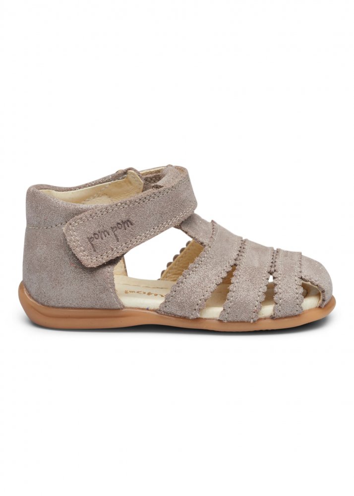 Skön sluten nybörjarsandal i ljusgrått från Pom Pom.Sandalen är för de små och har en praktisk sluten tå som skyddar tårna.