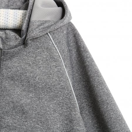 Jackan har en avtagbar huva med tryckknappar och resår vid handleden som skyddar mot vind och väder.