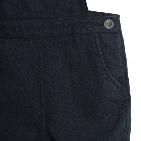 Söta kanvasbyxor för vardag och festVacker overall med korta ben och sidofickor. Byxorna har breda axelremmar som korsar bakpå och som kan justeras framme med knappar.