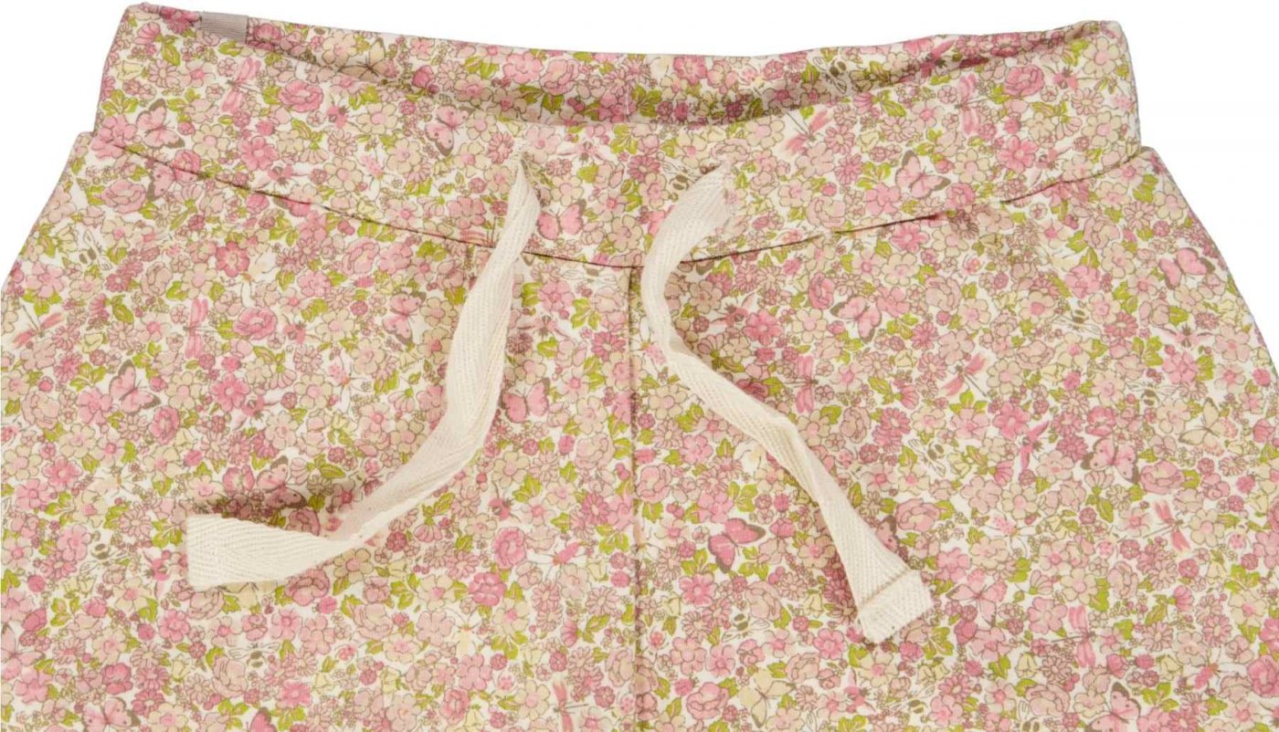 Bedårande leggings med blom- och fjärilstryck i en mjuk ekologisk bomullsjersey.Byxorna har knytband och resår i midjan och kantband i benen.