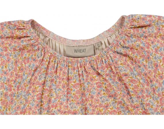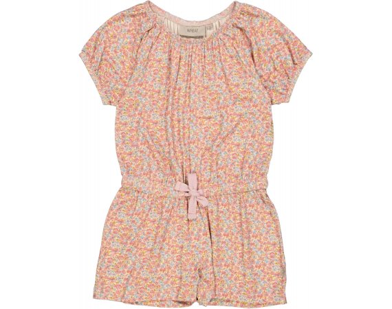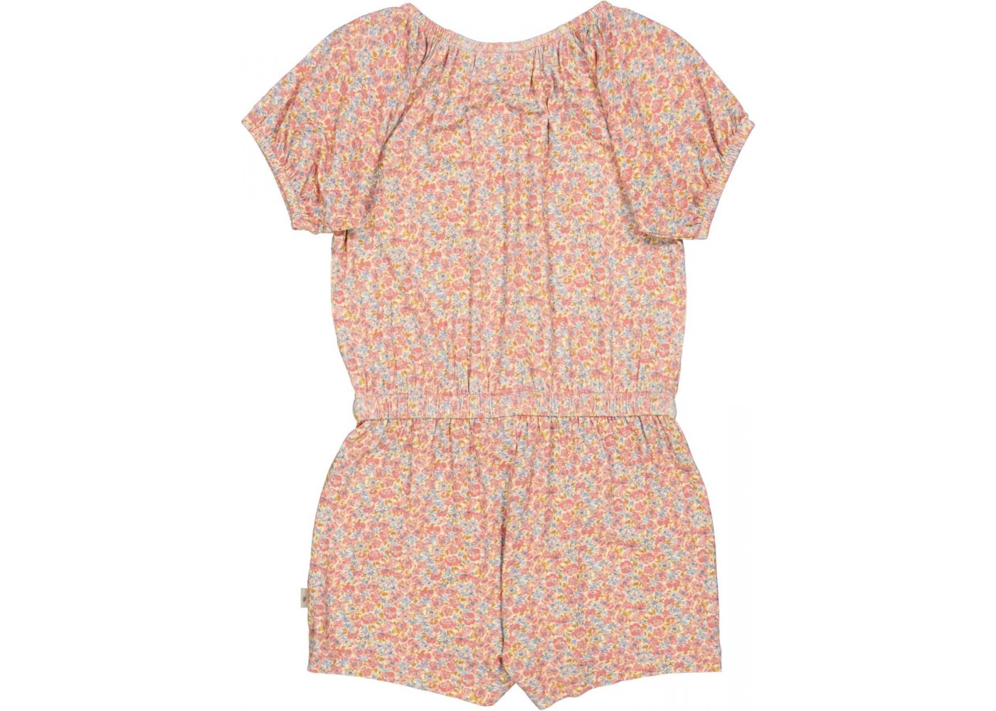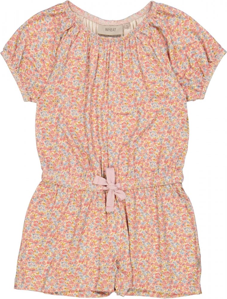 Supersöt och somrig byxdräkt med fina handritade blommor.Dräkten har resår vid halsen och ärmarna. Dräkten är gjord i en underbar viskosblandning och har knytband i midjan.
