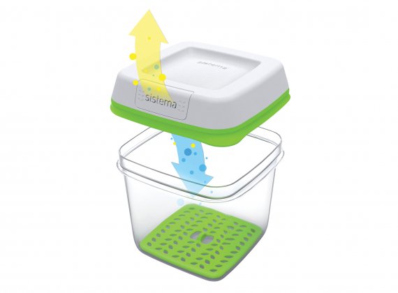 Förvaringslåda från Sistema med ett revolutionerande filter som garanterar lång hållbarhet för maten.Förvaringsboxen har ett inbyggt FreshVent-lockfilter som ger innehållet bästa möjliga miljö och som säkerställer att maten hålls fräsch. Filtret varar för alltid och behöver inte bytas ut! Det upphöjda gallret (CrispTray ) längst ner hjälper till att hålla bort fukten och ger krispigare grönsaker och frukter.