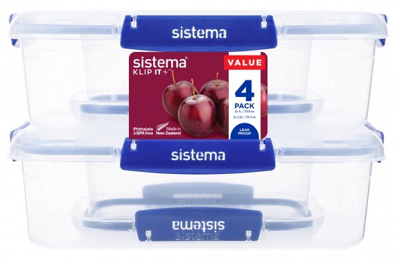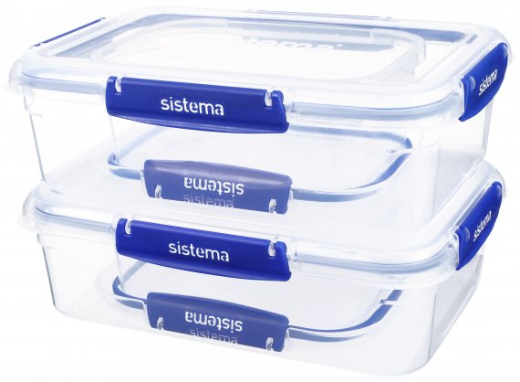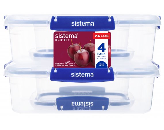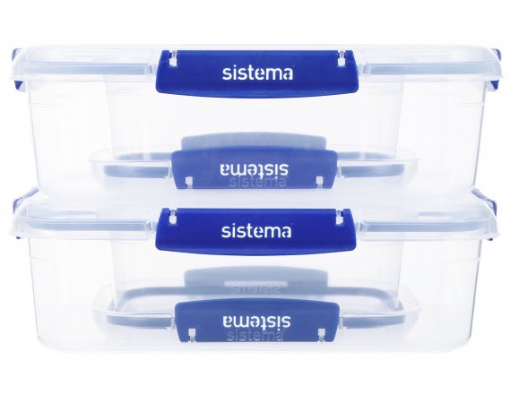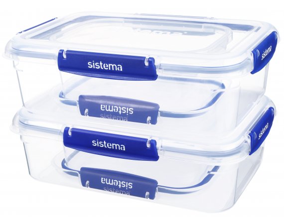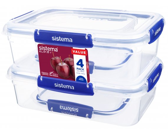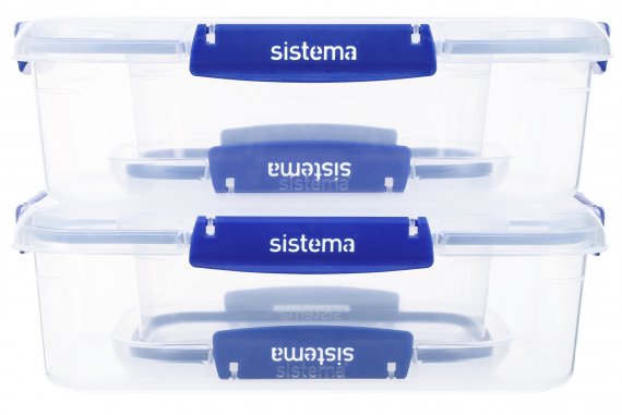Set med 4 st. transparenta och praktiska rektangulära förvaringsboxar i superkvalitet från Sistema.Varje behållare är utformad med - Klip It Plus - klämma och gummikant i locket, vilket säkerställer att behållaren förblir helt tät och innehållet fräscht under längre tid.