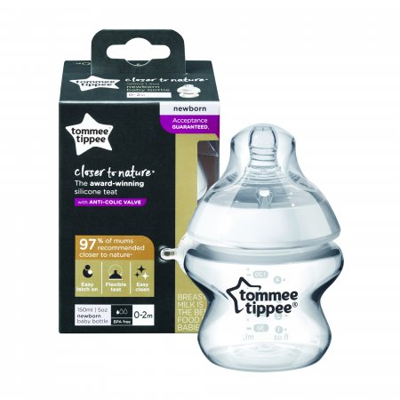 Prisbelönt nappflaska och anti-kolik flasknapp storlek +0 månader med litet hål från Tommee Tippee.