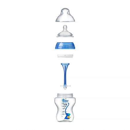 Prisbelönt antikolik-nappflaska med värmeindikator och flasknapp storlek +3 månader med mellanstort hål från Tommee Tippee.