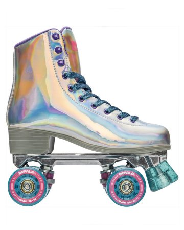 Nostalgiska side-by-side retro-rullskridskor från Impala i alla regnbågens färger.