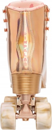 Nostalgiska side-by-side retro-rullskridskor från Impala i snygg rosa guld med holografisk insats.
