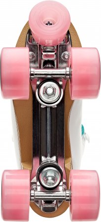 Nostalgiska side-by-side retro-rullskridskor från Impala i vitt, rosa och turkos.