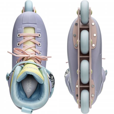 Nostalgiska side-by-side retro-rullskridskor från Impala i rosa och gult.