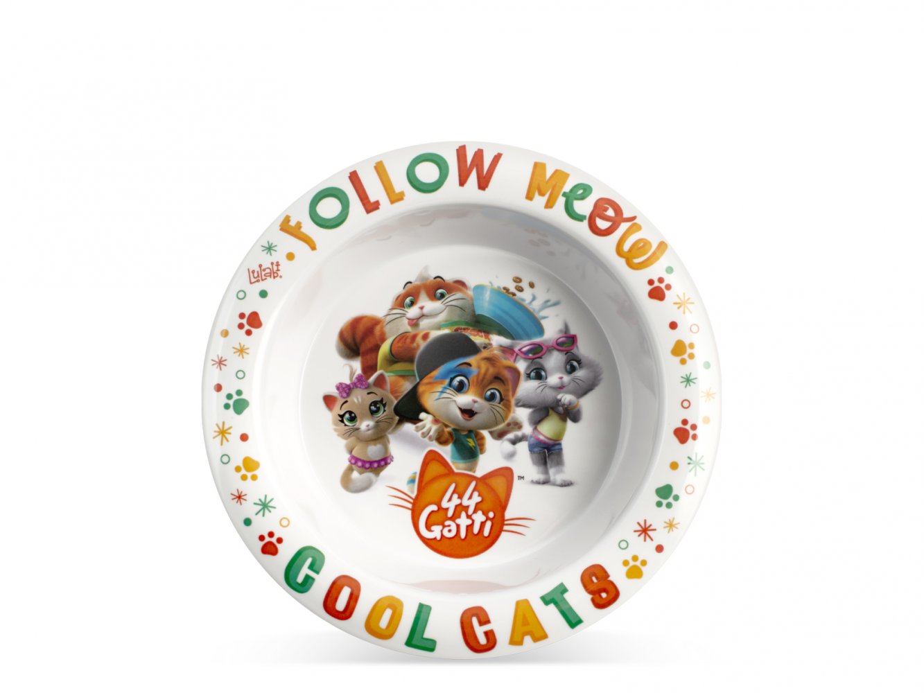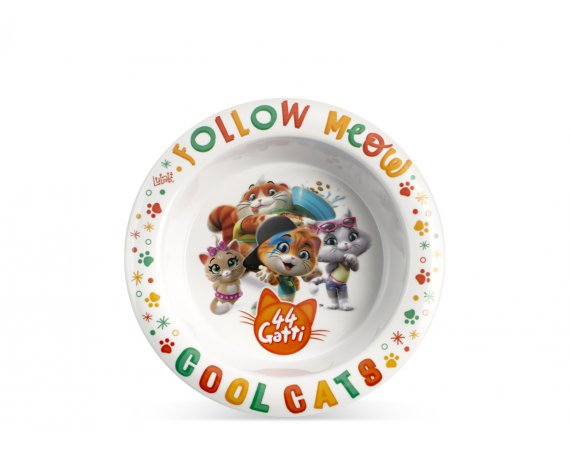 Tallriken är fylld med glada katter som har roligt och busar och tjafsar tillsammans.