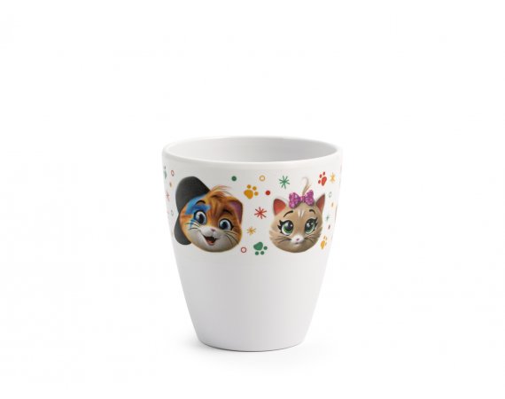 Supersöt vit mugg dekorerad med fyra söta katter i de vackraste färger från serien 44 katter.