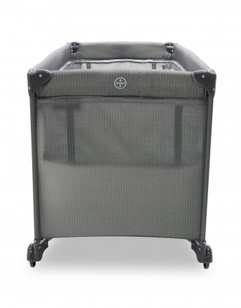 Den har två hjul som kan bromsas och fyra stora nätfönster, så att du enkelt kan se ditt barn från alla håll - och på avstånd. Den fjärde sidan är utrustad med en ficka till muslinfiltar eller leksaker.