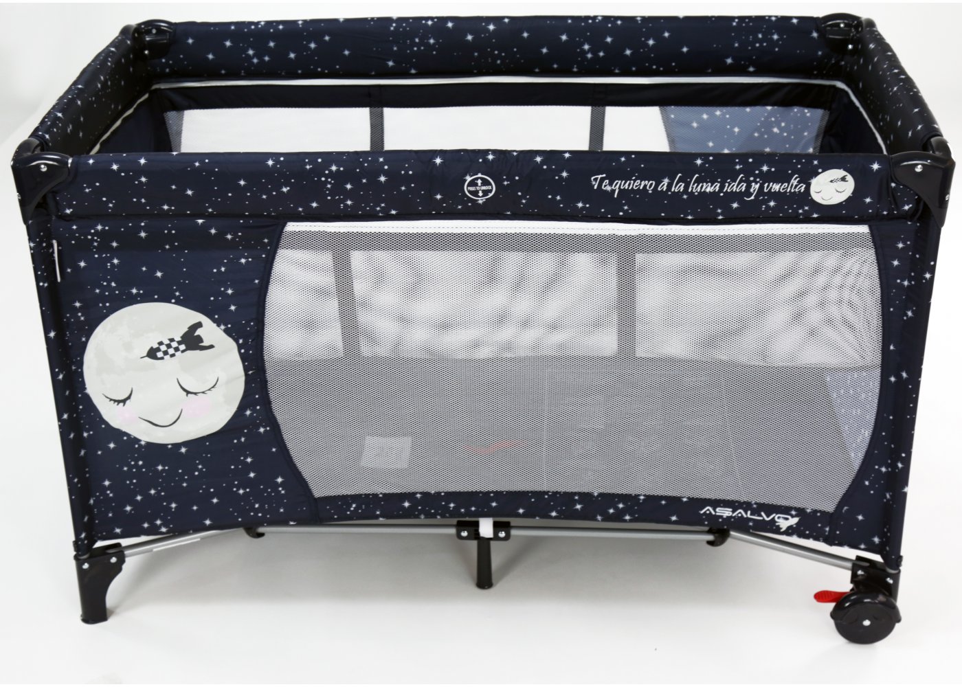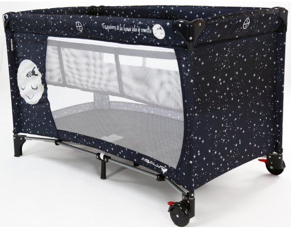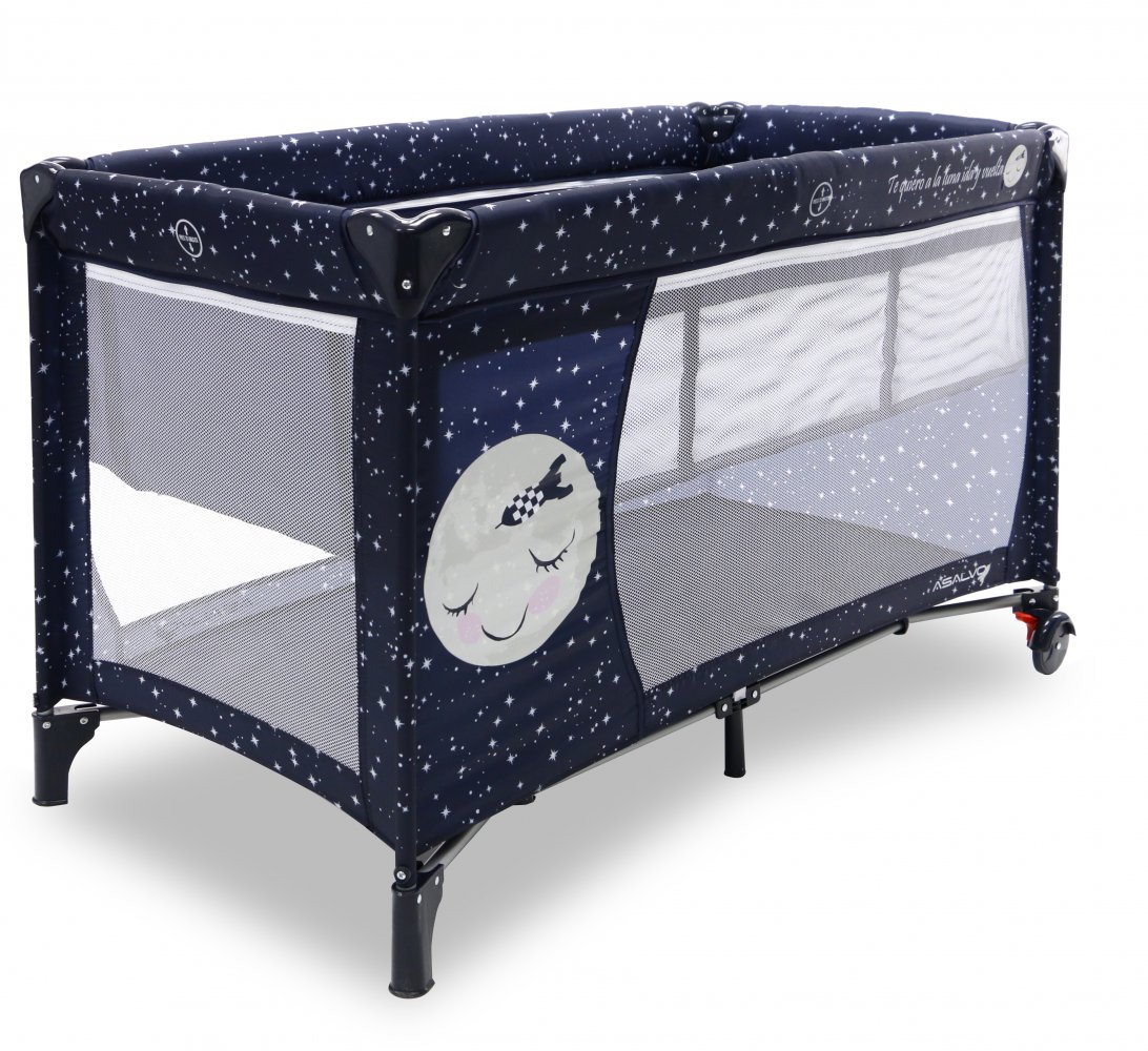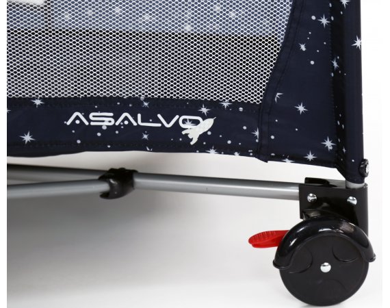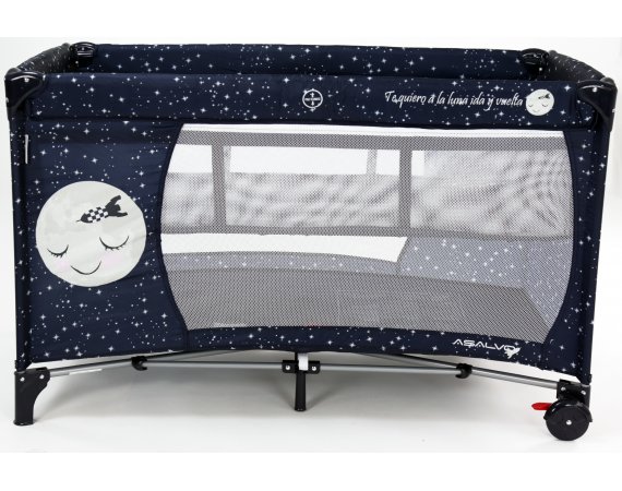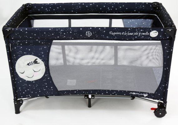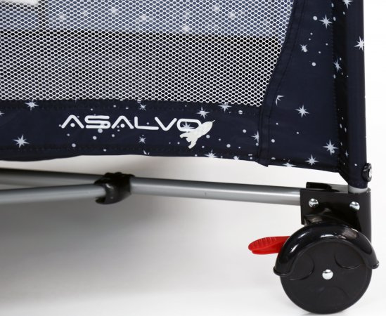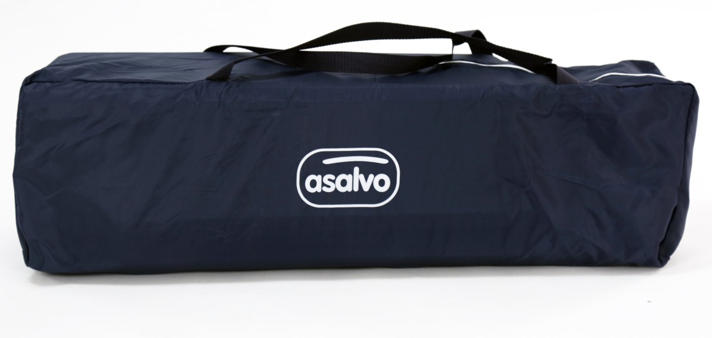 Asalvo Baby är enkel och med en söt illustration på sidan. Den har en smart insats till höjdjustering, för att lägga den lilla bebisen, så att du inte behöver böja ryggen så långt ner i sängen, om du ska ge napp eller gosa lite, vid läggdags. Den kan naturligtvis bara användas till de mycket små bebisarna. När/om du inte längre behöver insatsen längre, tas den lätt ut och resesängen fungerar som en helt vanlig säng.