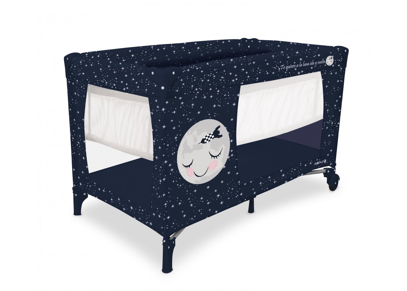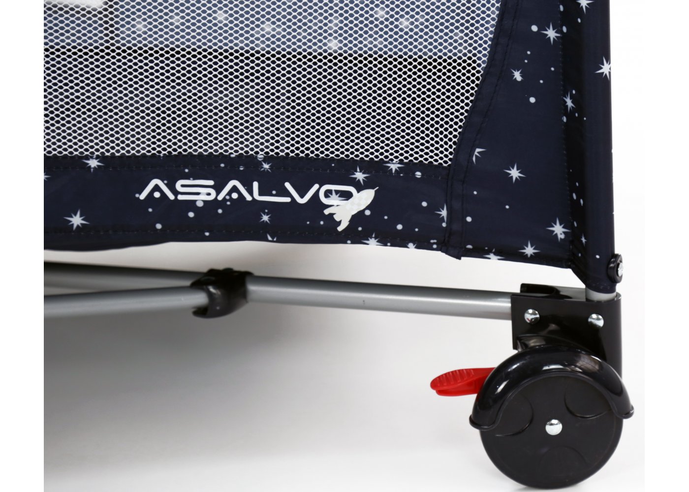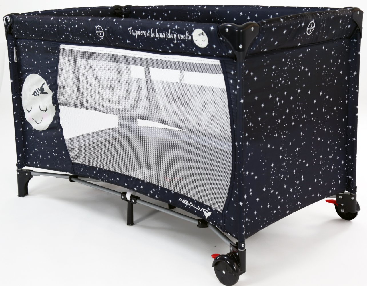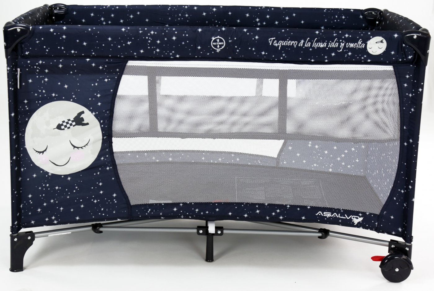 Asalvo Baby är enkel och med en söt illustration på sidan. Den har en smart insats till höjdjustering, för att lägga den lilla bebisen, så att du inte behöver böja ryggen så långt ner i sängen, om du ska ge napp eller gosa lite, vid läggdags. Den kan naturligtvis bara användas till de mycket små bebisarna. När/om du inte längre behöver insatsen längre, tas den lätt ut och resesängen fungerar som en helt vanlig säng.