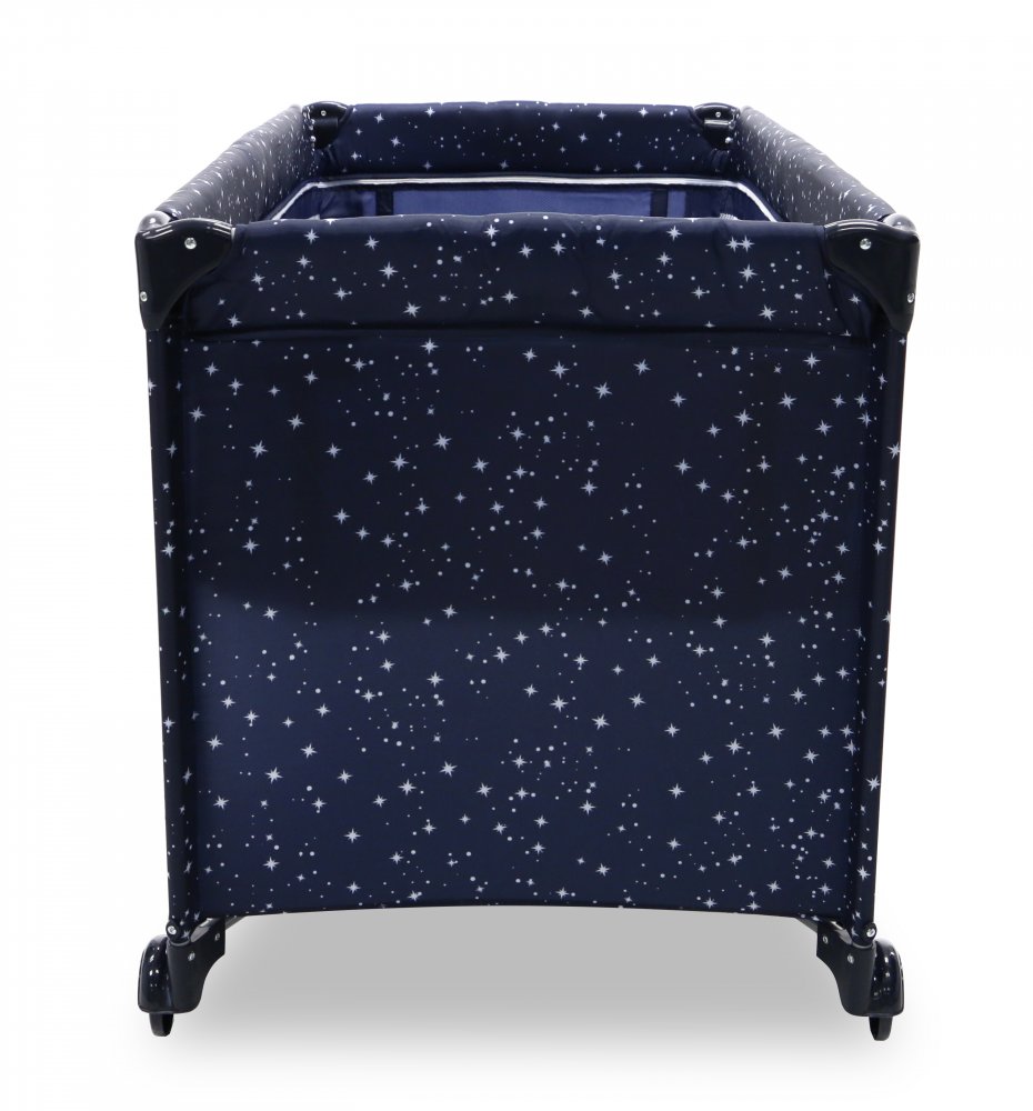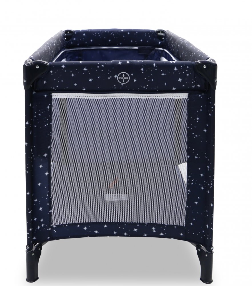Här får du en resesäng som är väldigt lätt att fälla ut. Den fälls ut i fyra enkla steg.
