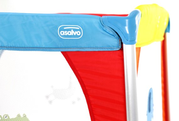 Asalvo-lekhagen har ben i aluminium, är tillverkad av en vattentät textil med färgglada originalillustrationer.