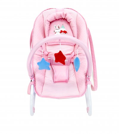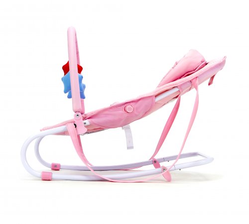 Babysittern är monterad med en bygel, där 3 fina figurer fästs, vilket snabbt fångar barnets uppmärksamhet och därmed hjälper till att aktivera dess sinnen och beröringssinne.