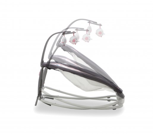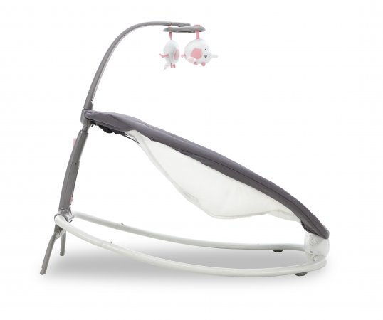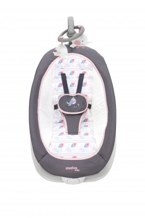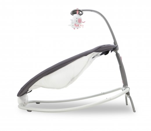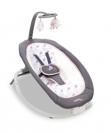Ryggstödet på babysittern kan justeras i fyra olika lägen, är utrustad med en avtagbar leksaksbygel för stimulering av barnets motoriska färdigheter.