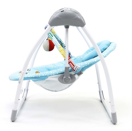 Babysitterns ryggstöd kan ställas in i 2 lägen, den har 5 gunghastigheter och 12 melodier som kan spelas. Babysittern har också en aktivitetsbygel, så det finns gott om möjligheter till underhållning.