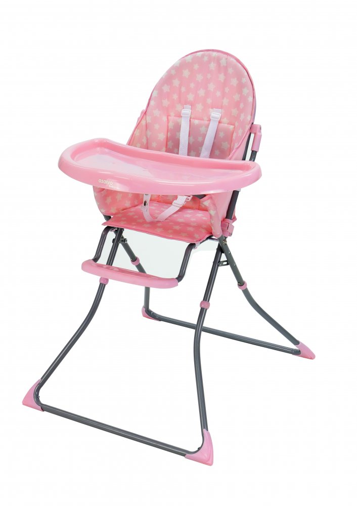 Här får du en praktisk barnstol med tvättbart säte, löstagbar bricka och 5-punktssele.