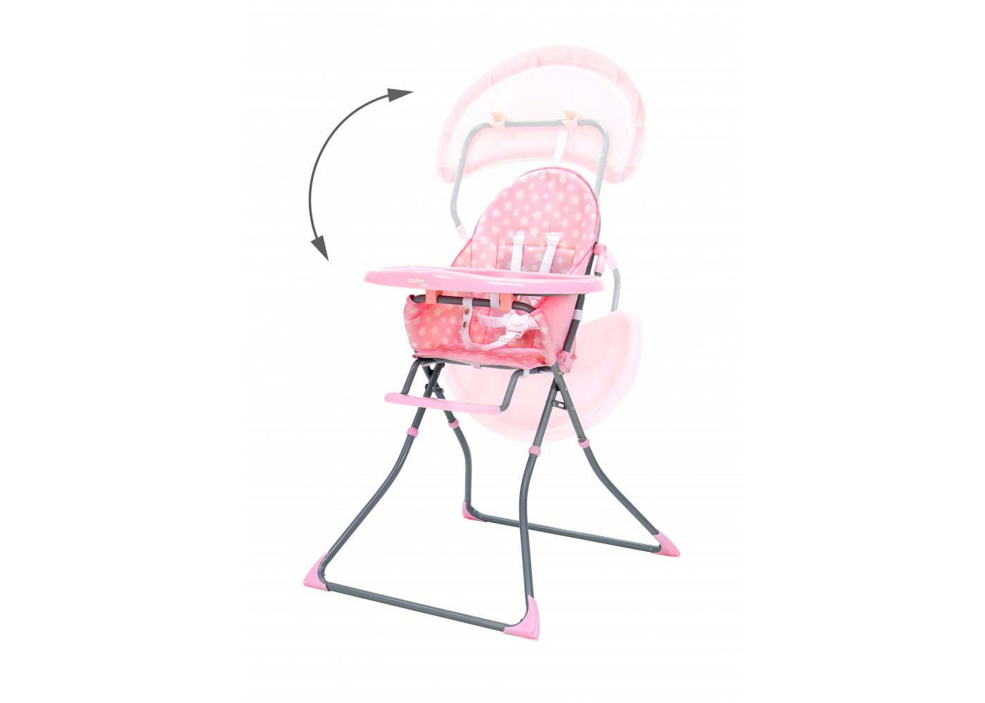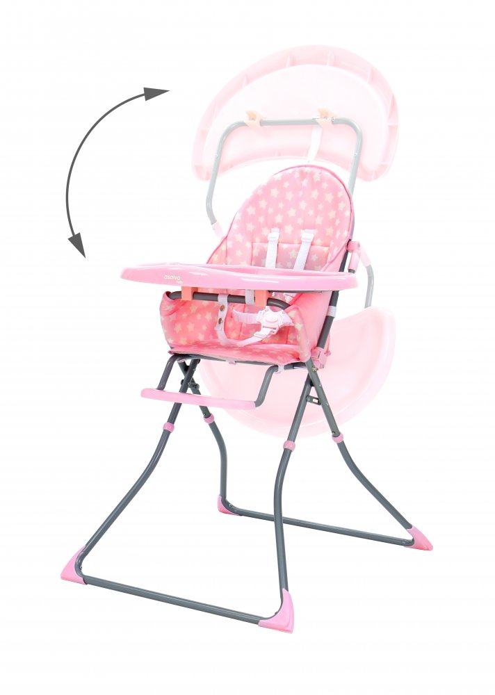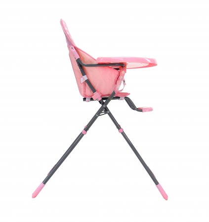 Barnstolen går att fälla ihop och har ett fast ryggstöd.