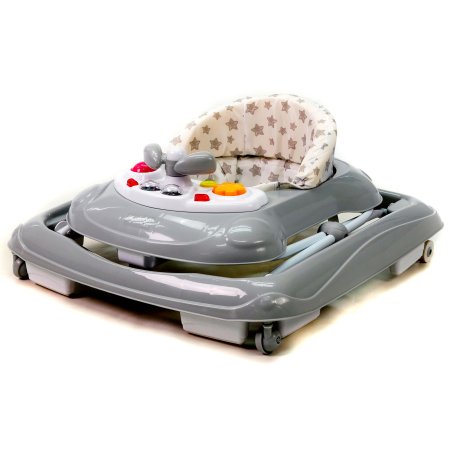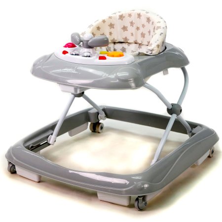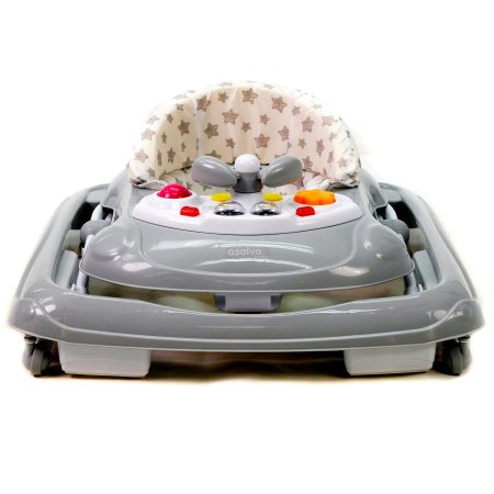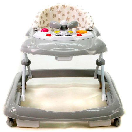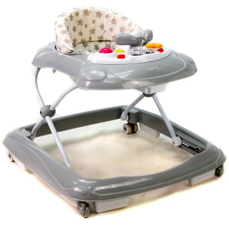 Aktivitetsdelen är utrustad med leksaker, lampor och musik. Gåvagnen har hjul på undersidan och 6 bromsklossar som säkerställer att gåstolenlåses när det kommer höjdskillnader.